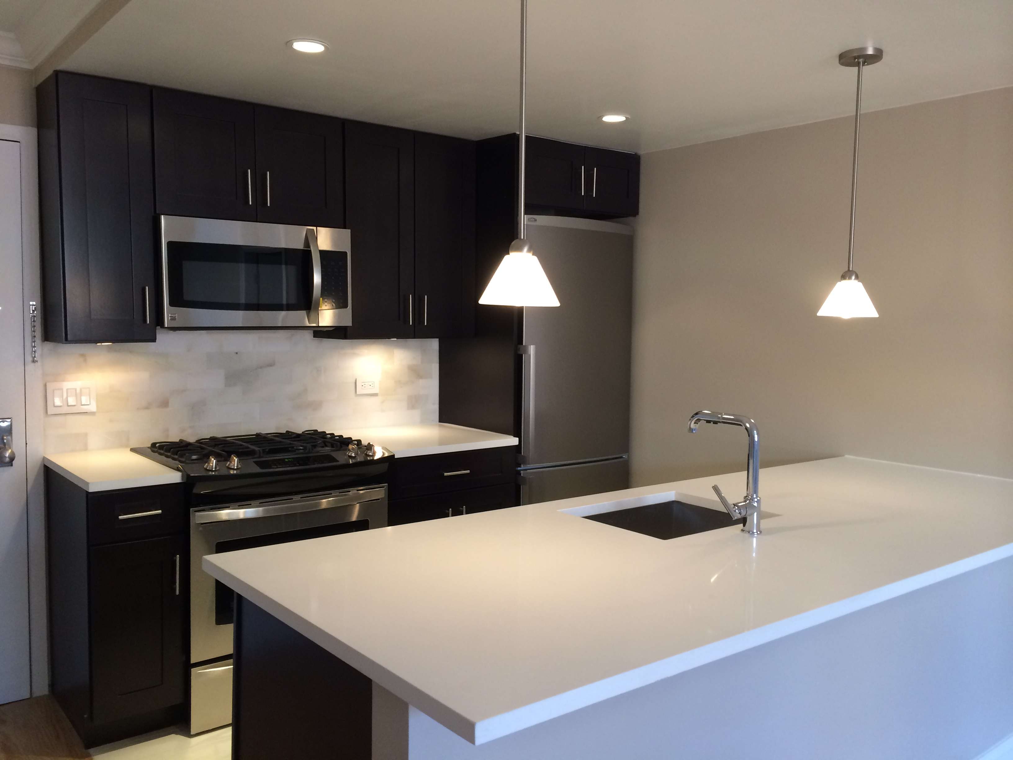 Full apartment renovation: framing, plumbing, electrical, sprinklers, HVAC, drywall, tile, finish carpentry, painting.