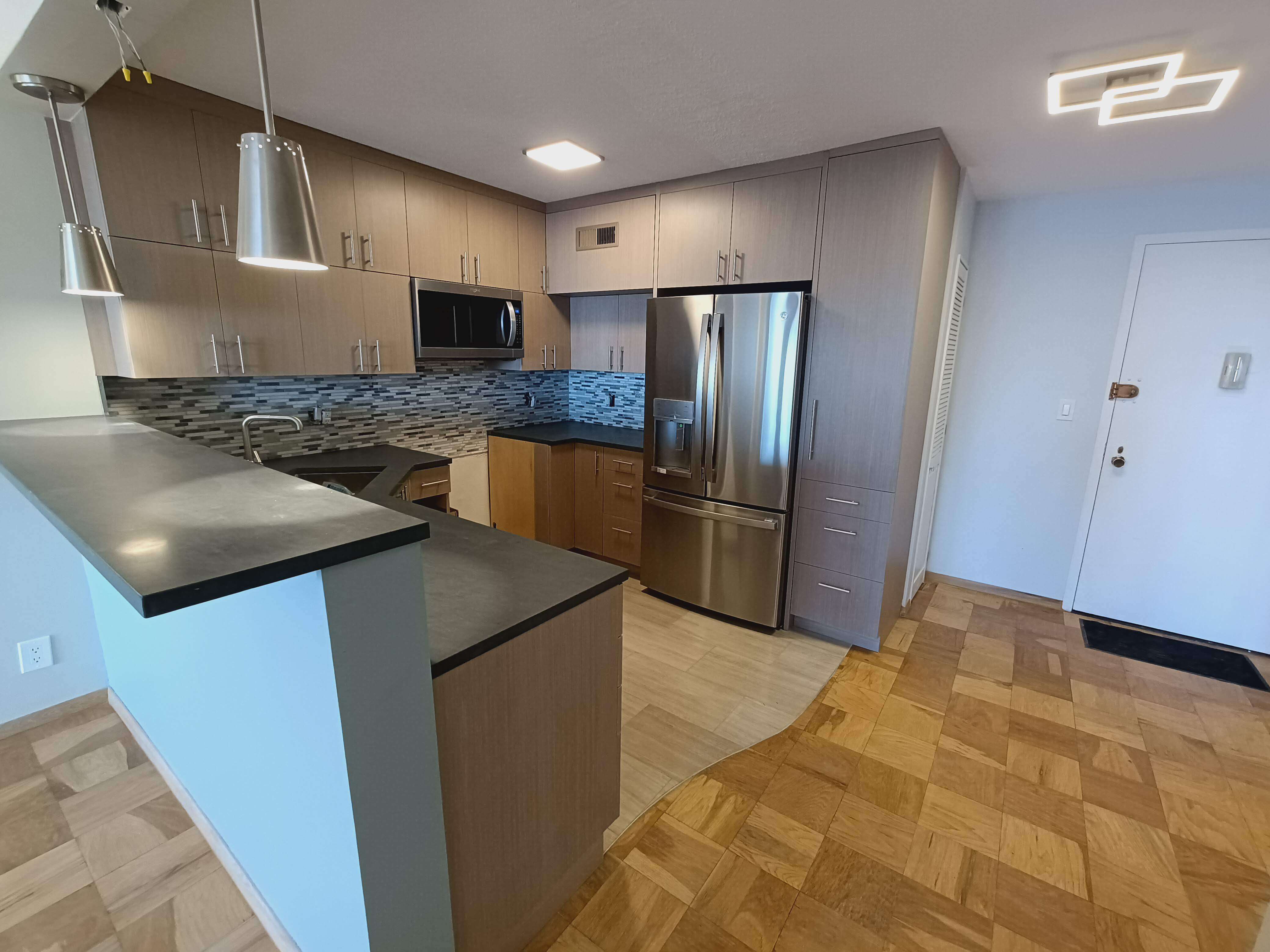Full apartment renovation: framing, plumbing, electrical, HVAC, drywall, tile, finish carpentry, painting.